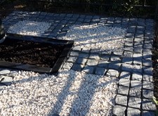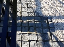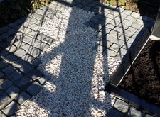 Практически все, что требуется для удовлетворительного внешнего вида – это обустроить пол. Так и в этом заказе. Мы сделали пол, частично из брусчатки, частично из мраморной крошки. Установили металлическую лавочку. Поправили покосившуюся плиту и установили цветник.