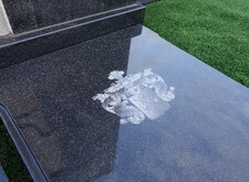 В данном заказе необходимо было изготовить памятник, достаточно не стандартной формы. Нанести изображение усопшей пары. Кроме этого на надгробной плите необходимо было нанести фамильный герб.