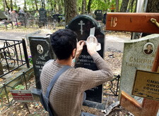 Последним этапом работы стала наклейка фотокерамики на памятник и обновление потускневших надписей на обоих надгробьях.
